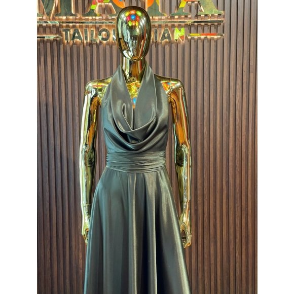 cowl neck dark Green dress